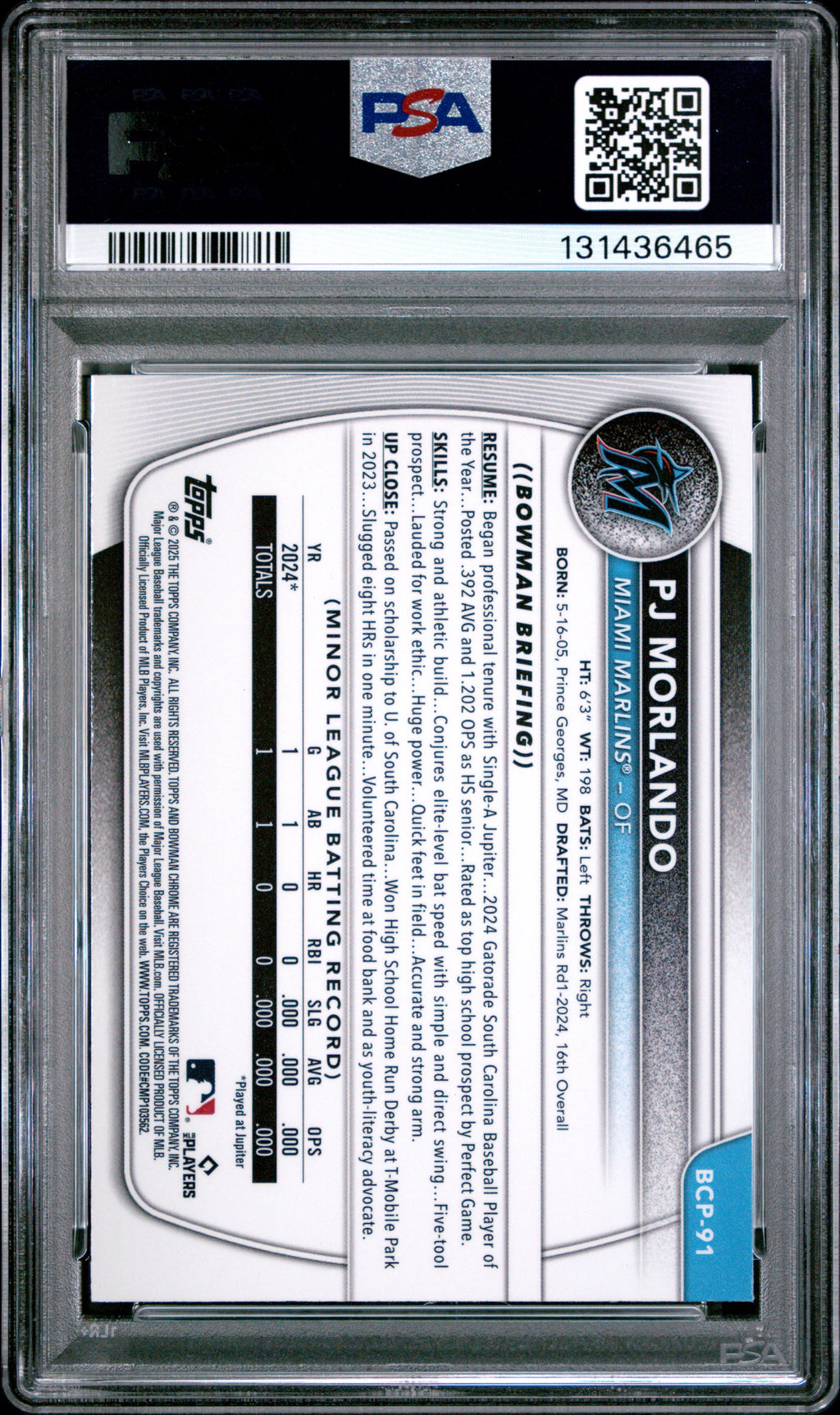2025 Bowman Mega Box PJ Moreland Pink /199 PSA 9