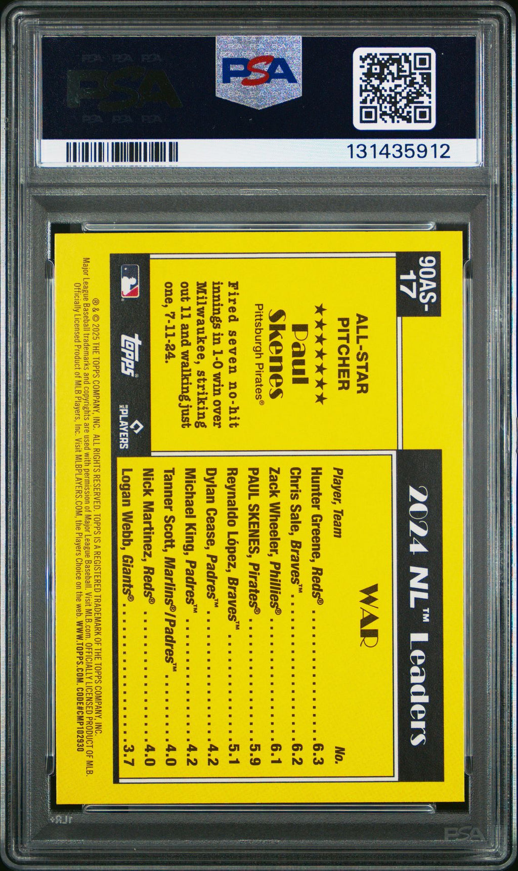 2025 TOPPS 1990 TOPPS ALL-STAR 90AS17 PAUL SKENES BASE BLUE PSA 9
