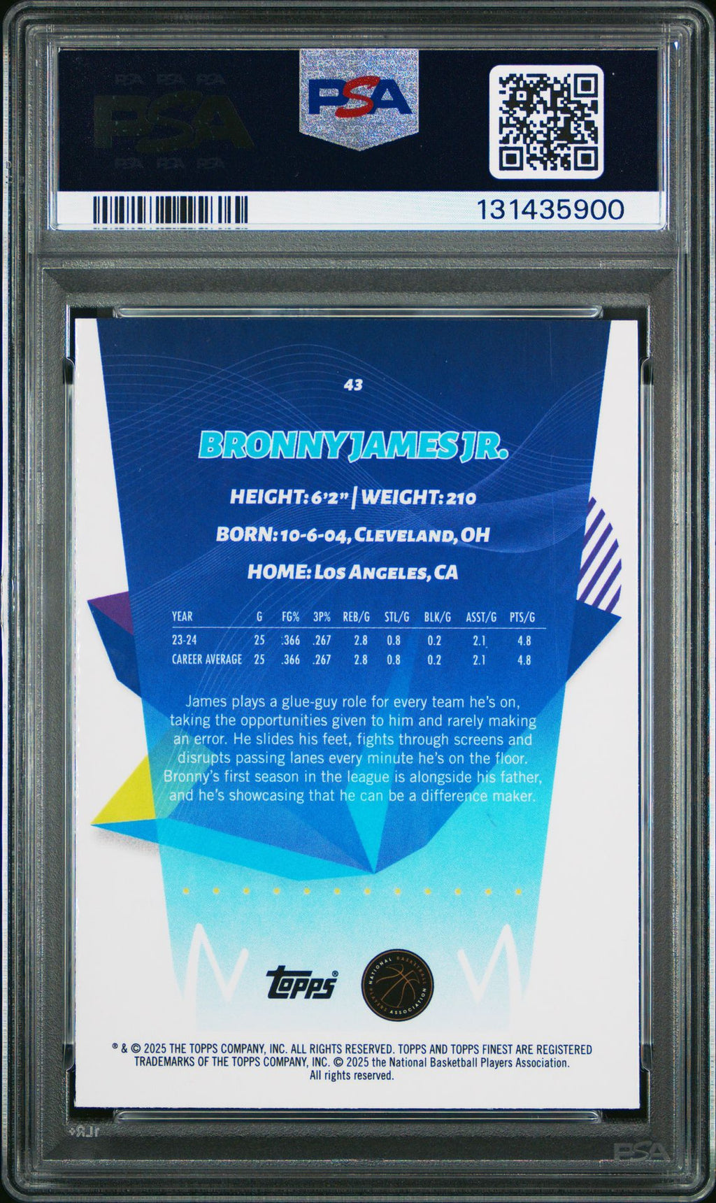 2024 Topps Finest Bronny James Jr. Sky Blue PSA 9