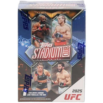 Step into the octagon like never before with the 2025 UFC Topps Stadium Club Collection-a trading card set that brings the raw power, excitement, and unforgettable moments from the octagon to life. Featuring dynamic photography, ultra-high-quality card stock, chrome technology, and unique parallels, this collection captures the intensity of every strike, submission, and knockout. Look for autographs of yesterday, today, and tomorrow's top UFC fighters and a collection of short printed inserts.
