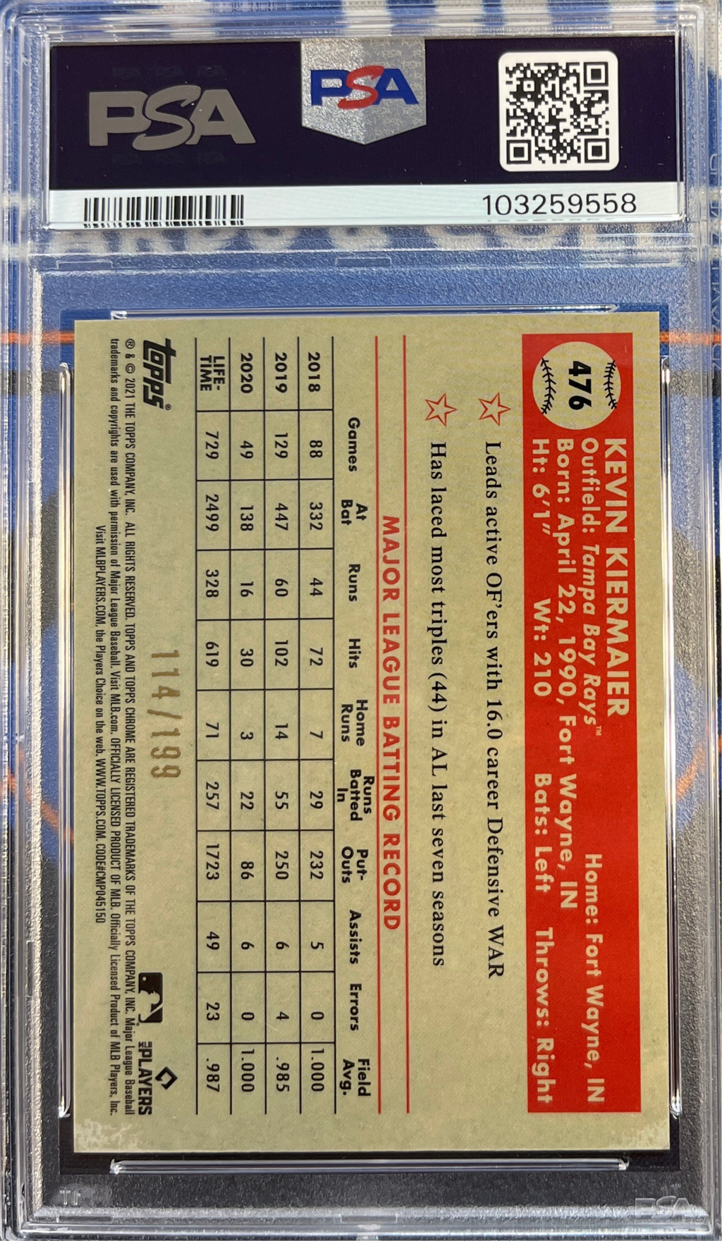2021 Platinum Anniversary Kevin Kiermaier Blue Mini Diamond Ref PSA 10