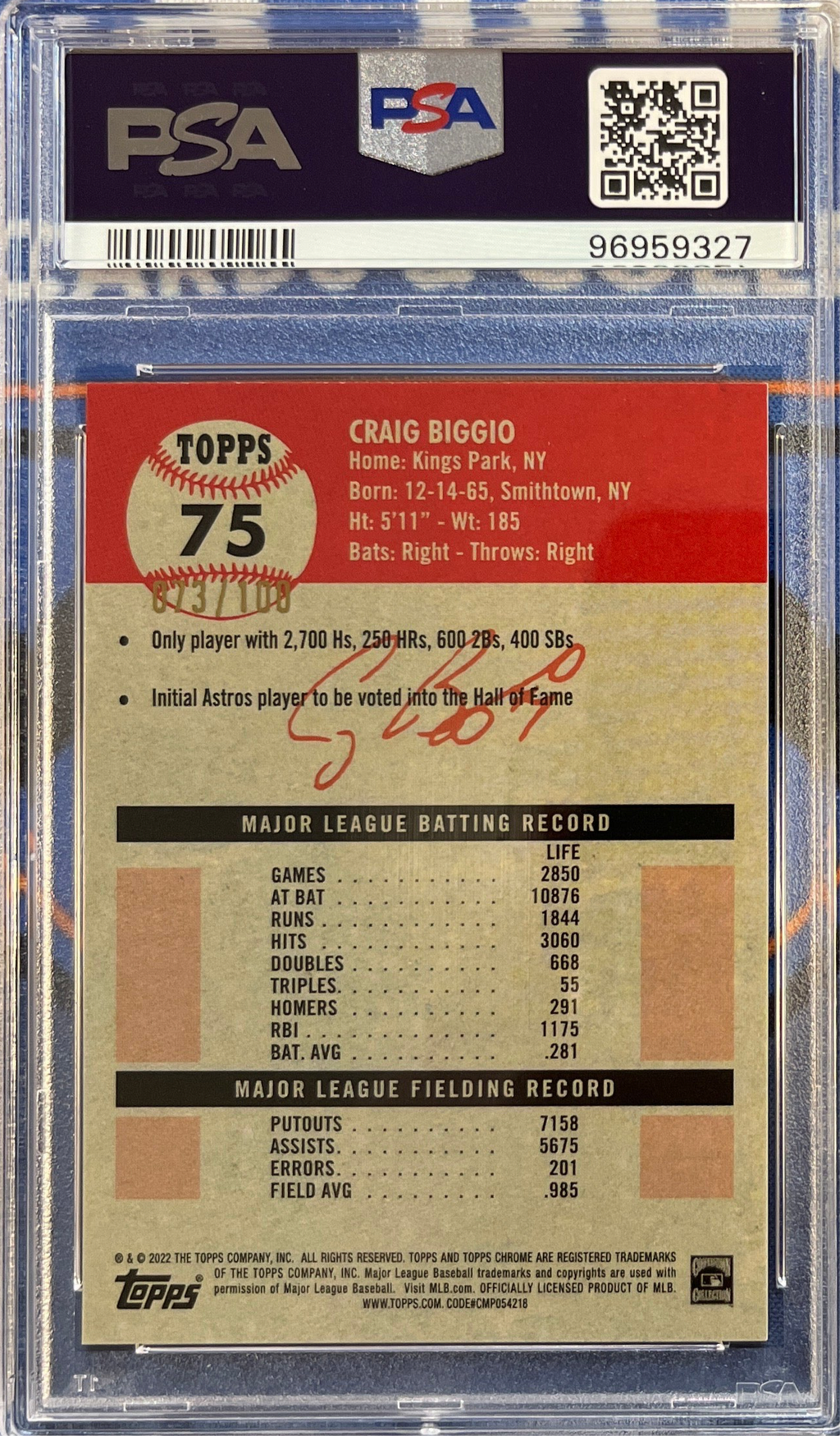 2022 Platinum Anniversary Craig Biggio Red Atomic Refractor PSA 9