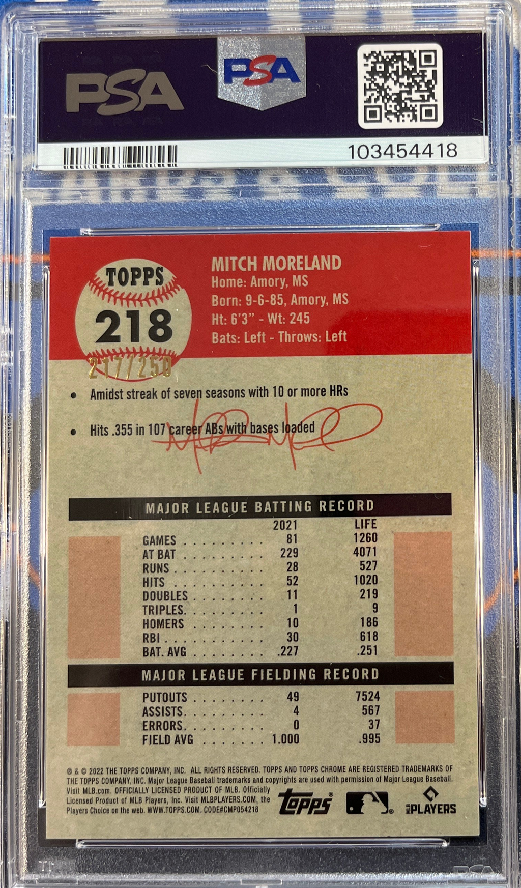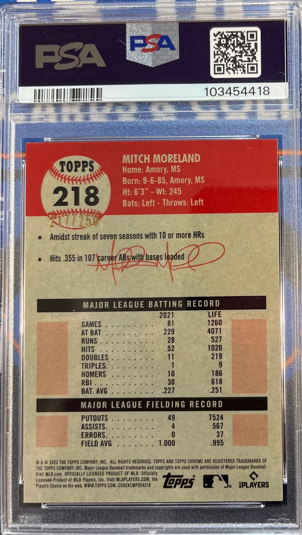 2022 Platinum Anniversary Mitch Moreland Yellow Raywave Refractor PSA 9