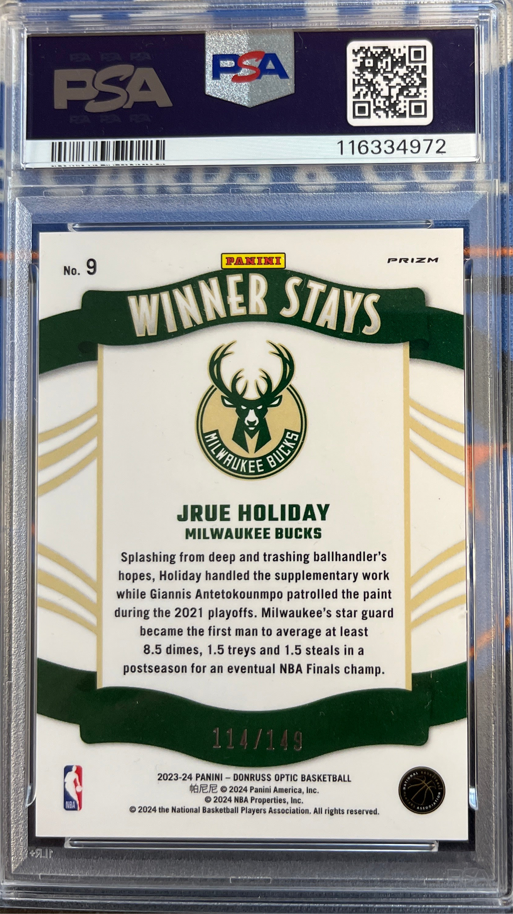 2023 Donruss Optic Jrue Holiday Winner Stays Lime Green PSA 9