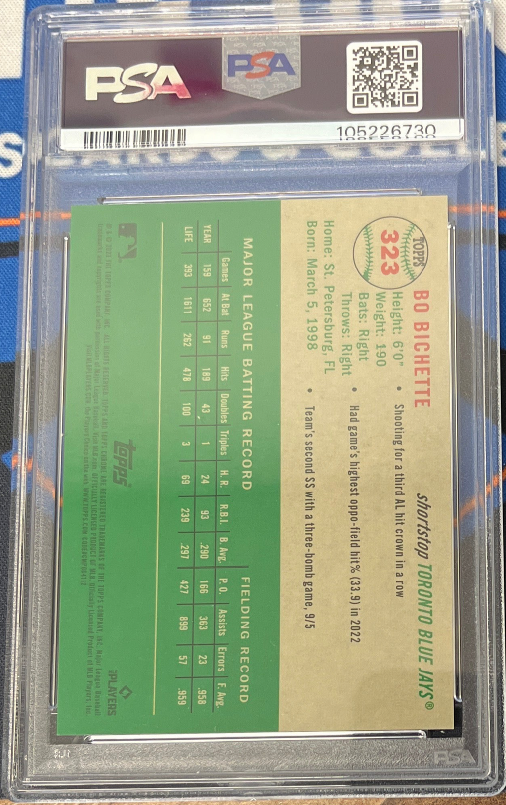 2023 Platinum Anniversary Bo Bichette Blue Mini Diamond Refractor PSA 9