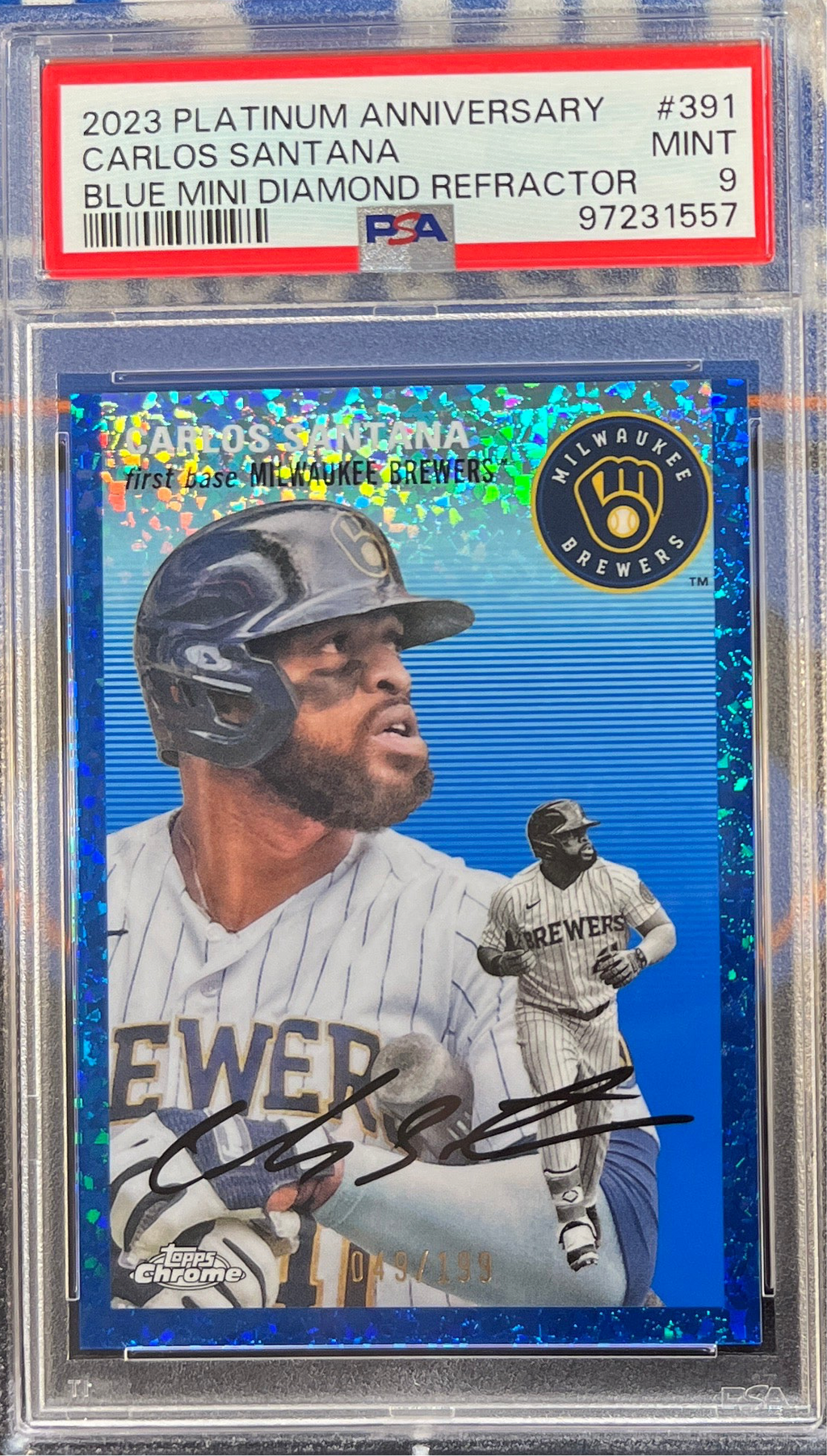 2023 Platinum Anniversary Carlos Santana Blue Mini Diamond Refractor PSA 9