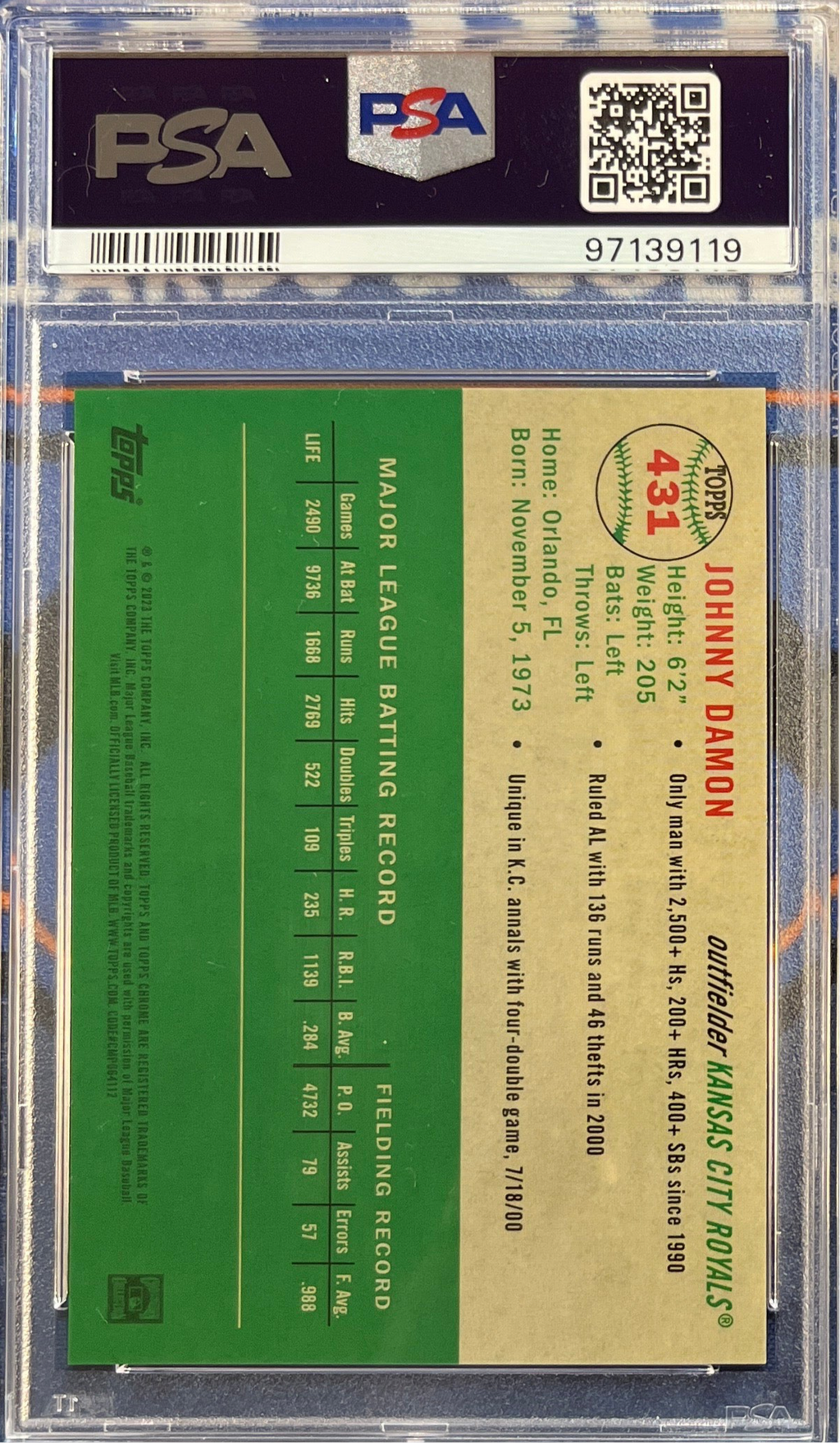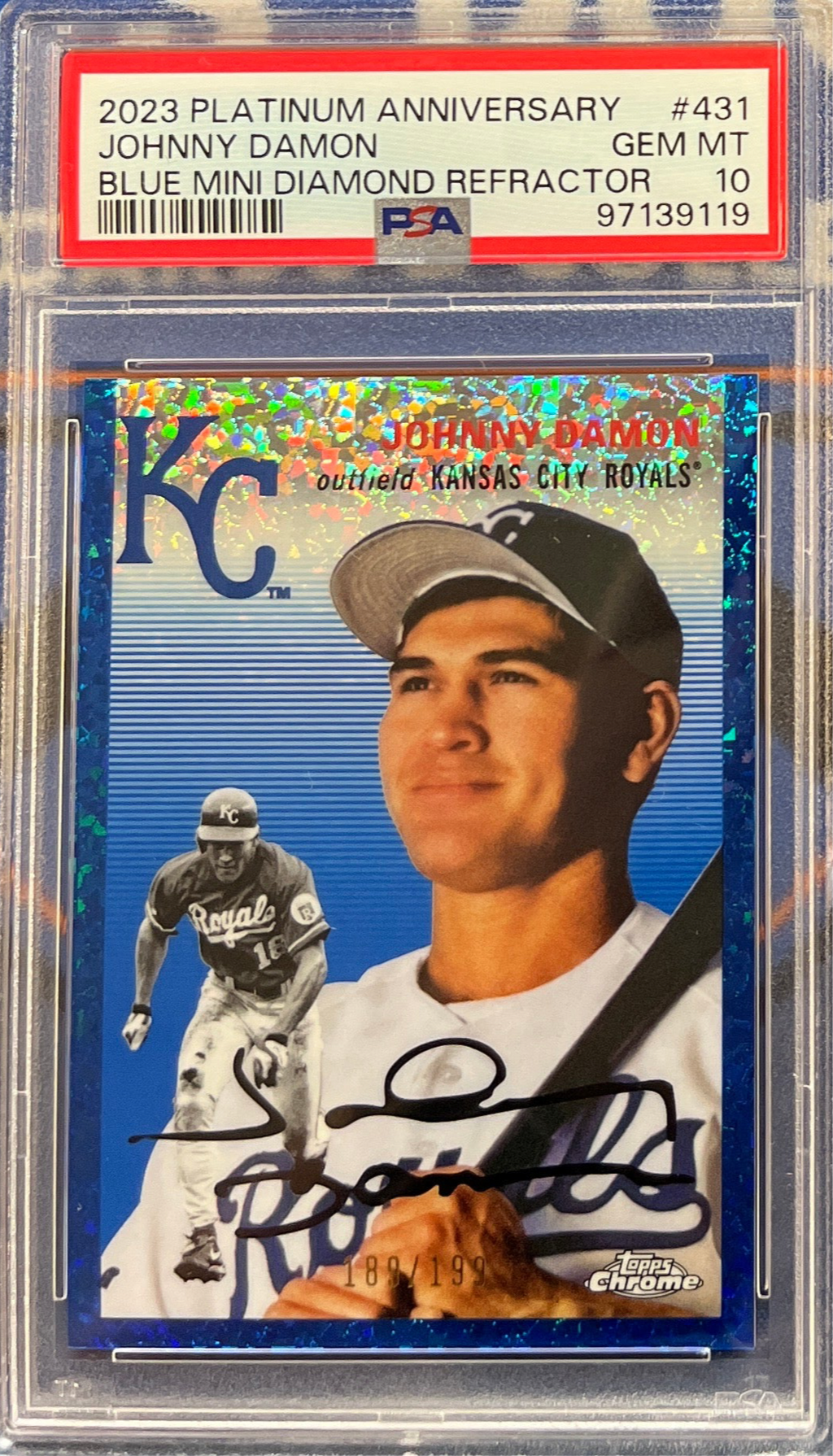 2023 Platinum Anniversary Johnny Damon Blue Mini Diamond Refractor PSA 10