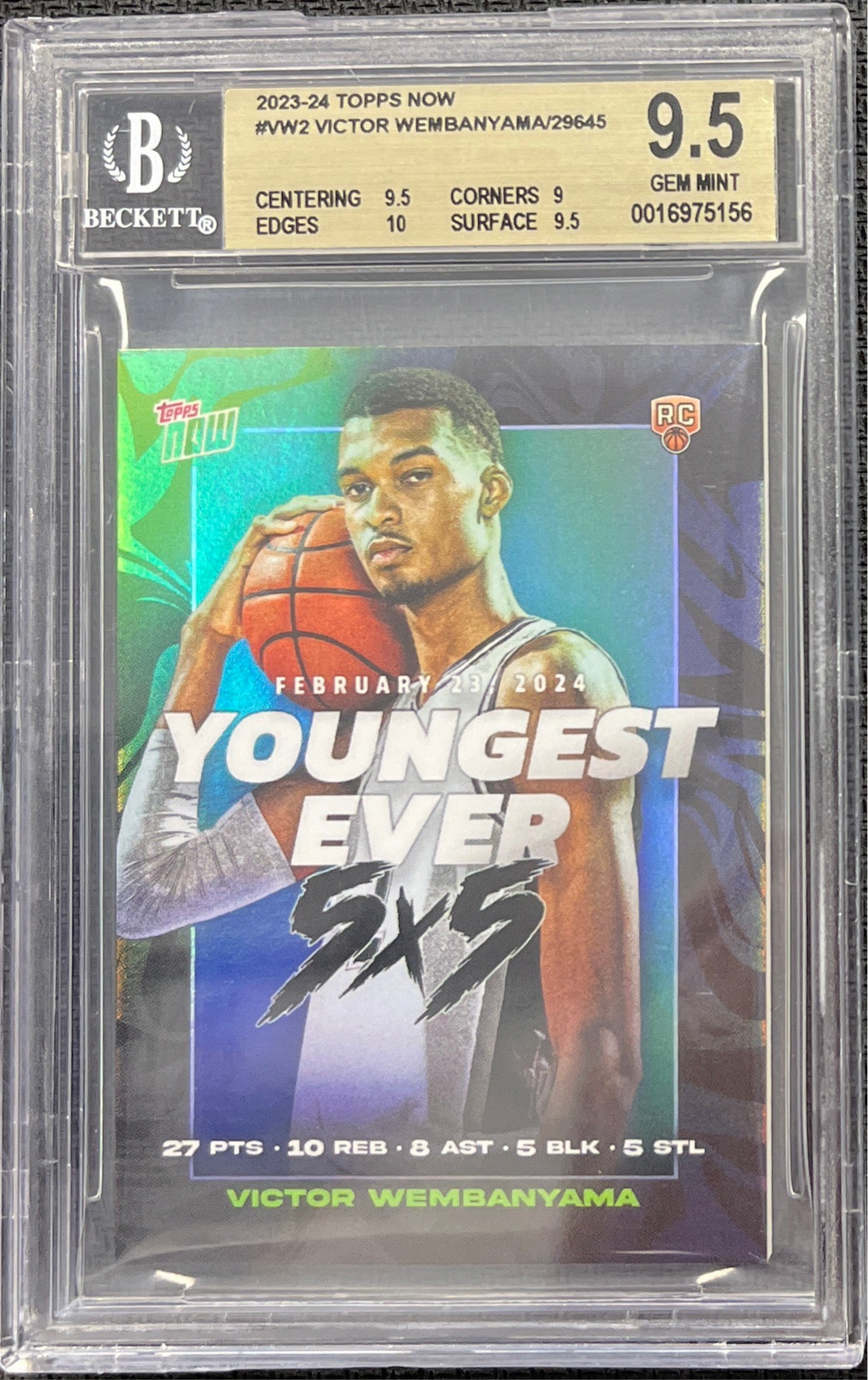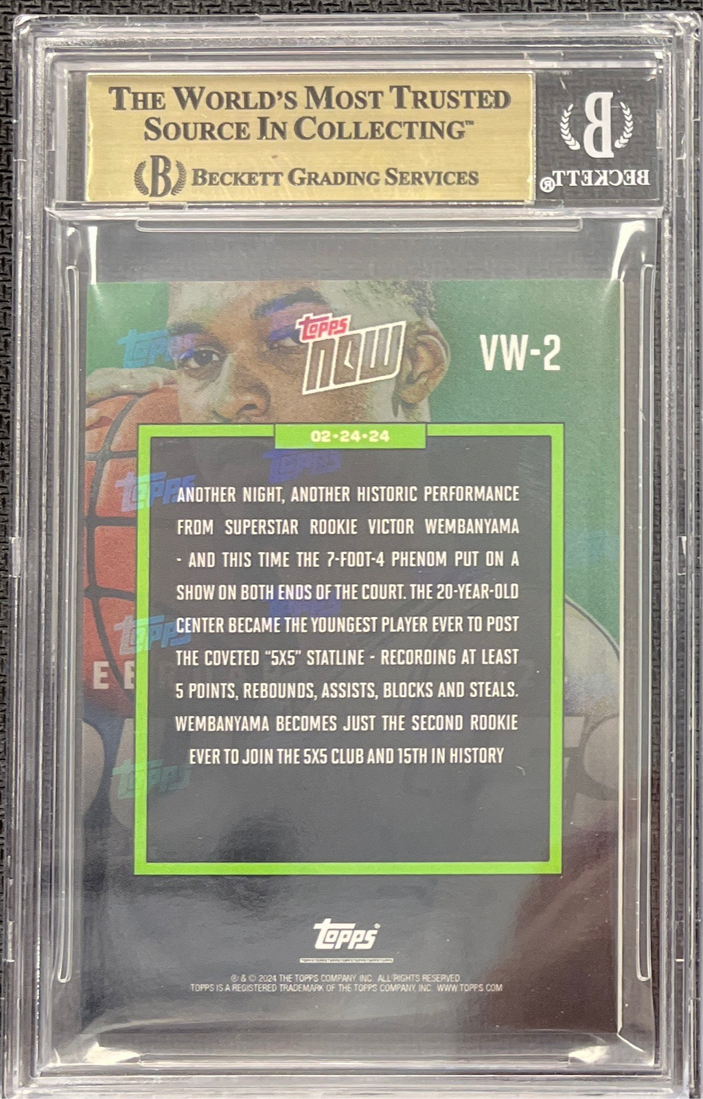 2024 Topps Now Victor Wembanyama "Youngest Ever 5X5" Card #VW-2 BGS 9.5